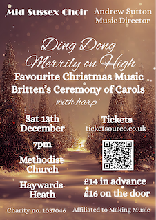 Join the Mid Sussex Choir for a magical evening of festive music and reflection as we present Britten’s A Ceremony of Carols, featuring harpist Isabel Samuel.